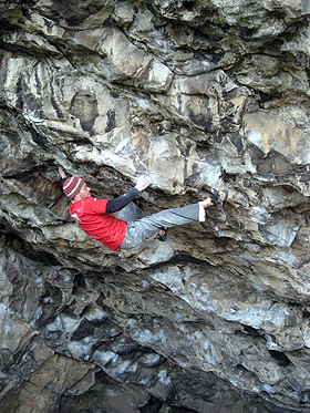 Gaz had originally inspected the line in 2004, cleaning holds from the roof of his car. In the following years it had seen attention from other climbers, most notably local lad, Dave Noden, who had come very close to climbing it on a number of occasions.