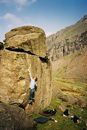 The weekend of 9th and 10th of June sees sausage fingered, local bouldering fanatic, Chris Davies host the 2007 North Wales Bouldering Meet. The event will be based at the Fricsan pub/campsite on the edge of the village of Cwm y Glo (which is 2 miles along the Caernarfon road from Llanberis).